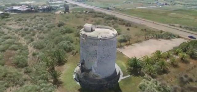 Siguiendo el tipo de sistema constructivo, está catalogada como una torre artillada de gran tamaño, que cuenta con una doble cámara en su interior. El acceso se realiza mediante una puerta elevada sobre el plinto, a través de un pasillo que lo conecta con la cámara interior, separada de la otra cámara por una cúpula. Además, encontramos grabados sobre la fauna marina en su interior.