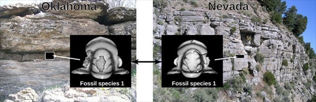 If a fossil has been dated radiometrically in one place, correlation allows one to work out the age in other places too. In the above example, it is known that the fossil in Nevada is slightly older than the ash layer dated to 507 myo. Now it can be said that same species in Oklahoma must also be about 507 myo, even though there is no volcanic ash layer present at this site.