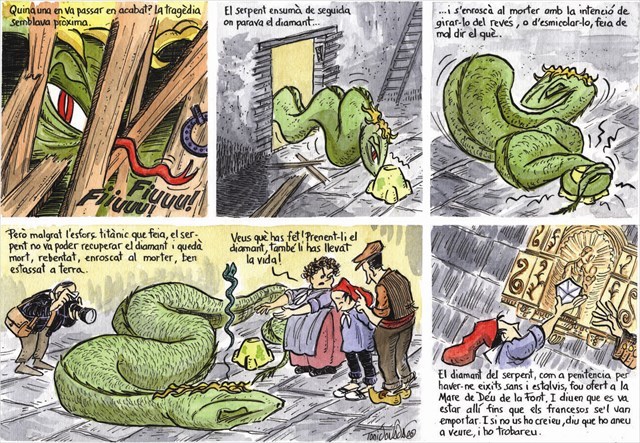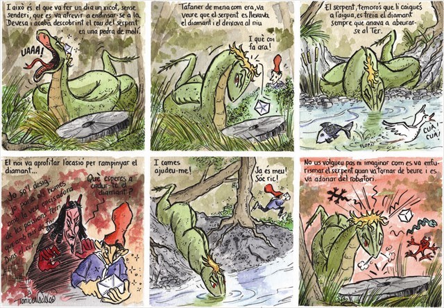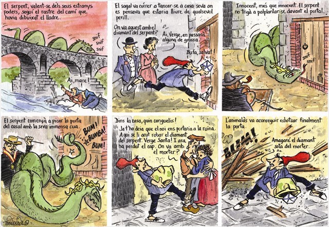 - Ja t’ho deia que el noi ens portaria a la ruïna. A qui se li acut robar el diamant del Serpent. Verge Santa!! I ara ha perdut el cap. On vas amb el morter? – va dir el pare del noi.