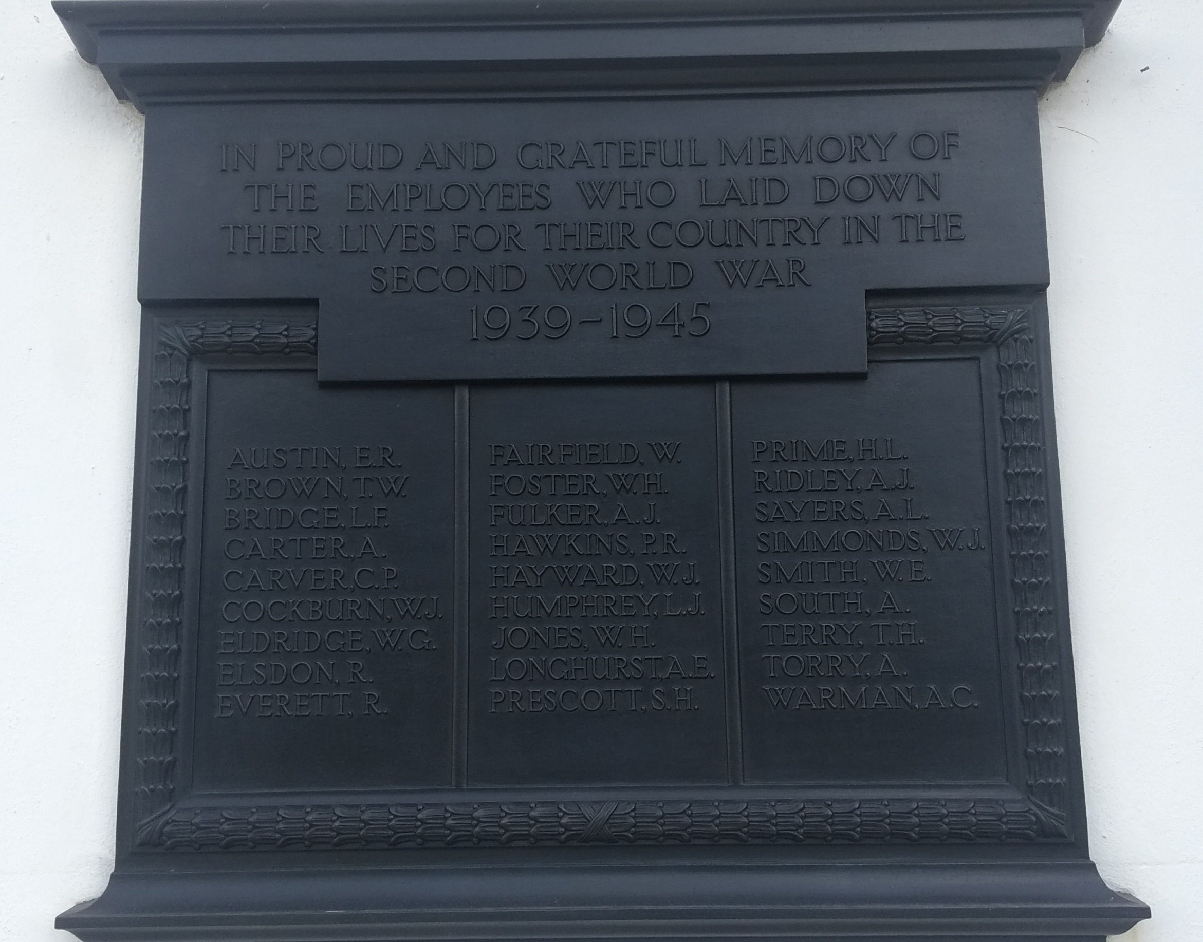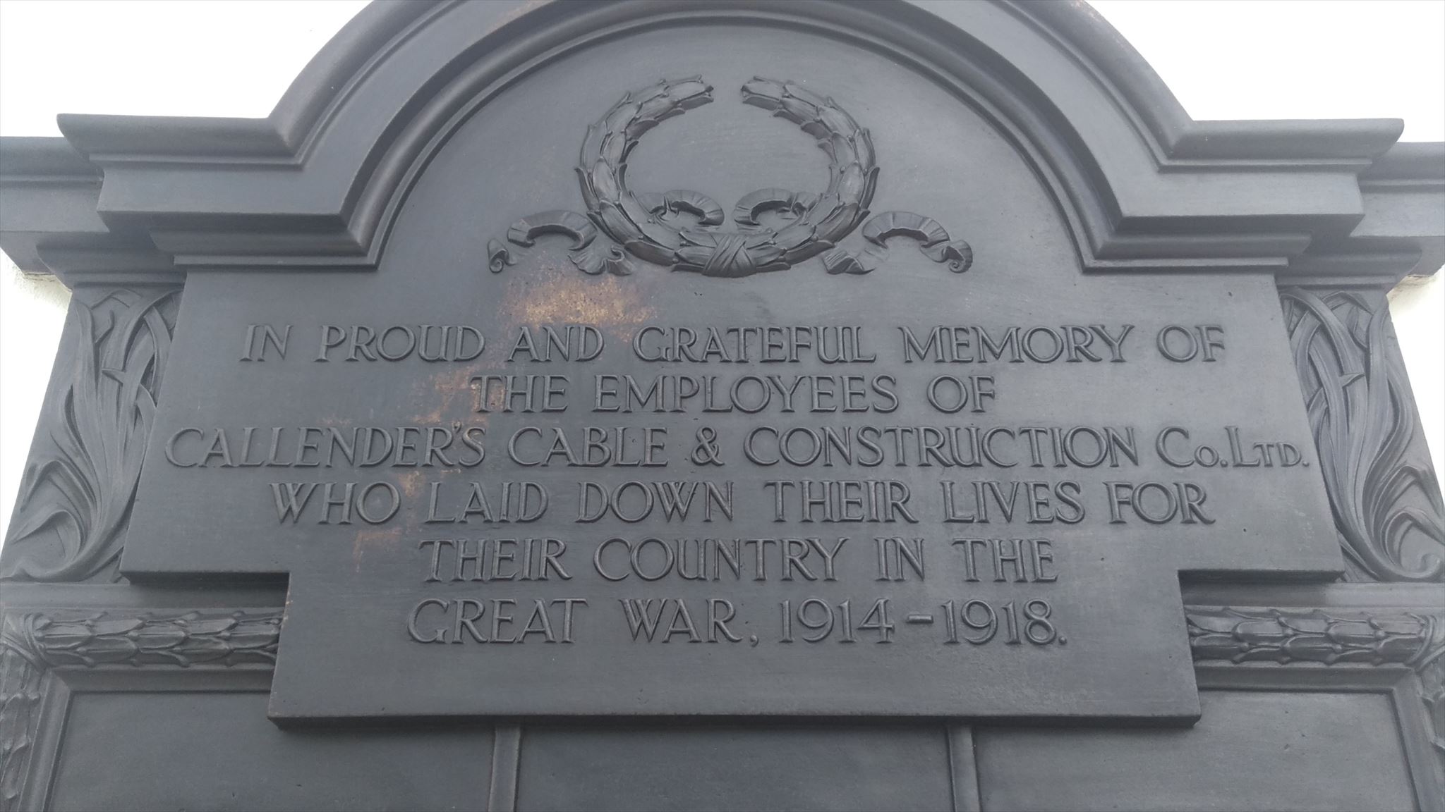 This memorial commemorates the employees of the Callenders Cables Work who were killed or went missing in the First World War (72 names) and the Second World War (27 names). It is a set of three bronze plaques. The plaques were refurbished by the local distribution centre and The Friends of BICC War Memorial in 2017.