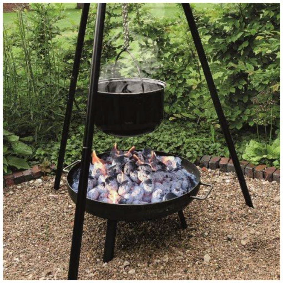Dafür leckere Wildschweinbratwurst aus den von Bülowschen Forsten und „Zielwasser“, das über dem Schwenktopf über Holzfeuer zubereitet wird.