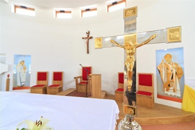 ENG - The new church is 28 x 28 meters in size, and the central church space can accommodate up to 1500 believers. In addition to the church there are additional spaces: winter chapel, day chapel, space for mothers with children, galleries, sacristy. In the new church, the regular worship services begin on the Feast of flowers on March 2005. The old church (house) was demolished on May 5, 2006 and since then all pastoral activities have taken place in the premises of the new church and pastoral center.