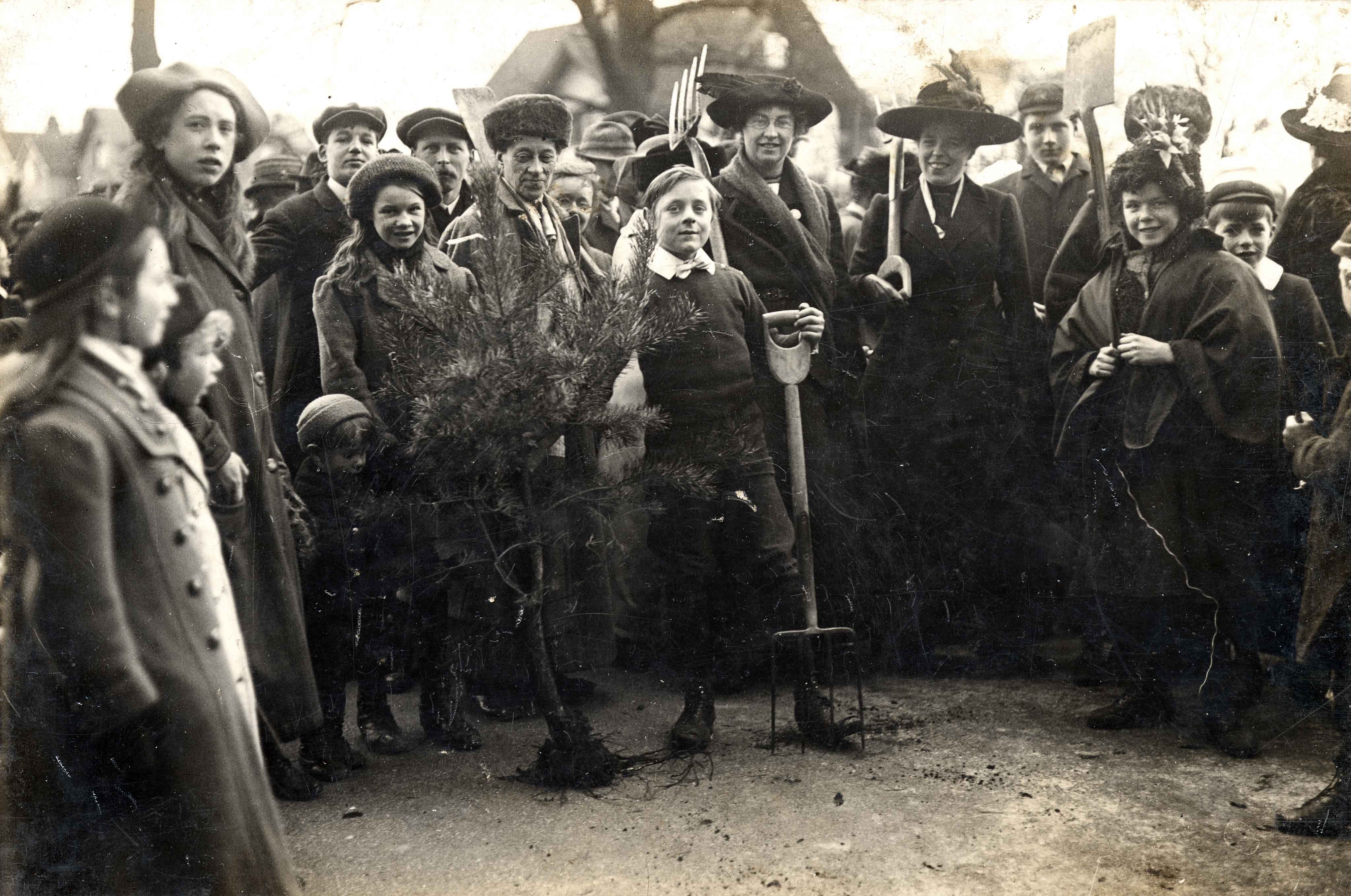 Early Garden City residents, including Ebenezer Howard, planting trees, Arbor Day 8th March 1913