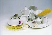 Nach Zeichnungen des Designers werden Originale in Gips gefertigt. Alle Teile werden auf einer Modellscheibe gedreht (1), Schnauben und Henkel werden geschnitzt (2). Danach erfolgt die Vergrößerung der Gipsoriginale (Modellgröße) um ca. 14 % um die Schwindung des Porzellans im Brand auszugleichen. Durch Abgießen mit Gips erhält man die „Mutterform“. Von der Mutterform werden Modelle aus Gips oder Kunststoff gefertigt, von denen dann die „Arbeitsformen“ in Gips geformt werden (3).