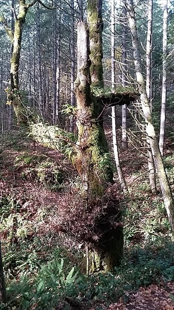 We often spend time exploring the trails around Pedder Bay and Pierson College. This Maple tree appealed to us as a suitable cache guardian, so here you go. Enjoy the walk.