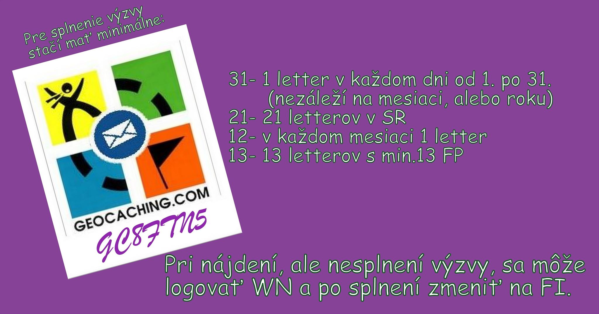 Keška sa nachádza na úvodných súradniciach. Poprosíme, aby ste ju po vrátení riadne zamaskovali, aby sa nezapáčila okoloidúcemu. Ďakujeme. Splnenia výzvy si môžete overiť na overovači nižšie.