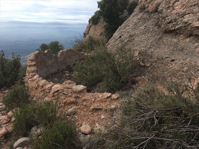 Estat: actualment està en runes, i només en queda part de l'habitacle a la cavitat de la muntanya, restes de la capella i una mica més amunt hi ha restes de la cisterna. Més endavant, des d'on tenim una molt bona panoràmica hi ha havia una creu feta amb amb branques però actualment només resta el pal vertical.