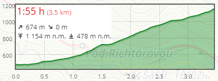 • druhá varianta je z Dolného Harmanca po zelenej TZ (letný čas: 2:30 h - 5,8 km, prevýšenie: 759 m)