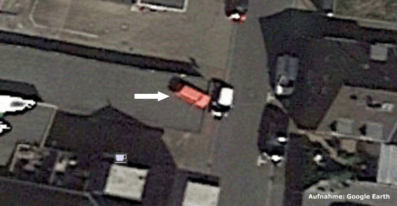 Ein weiteres Bild der Bocholter Suchbild-Serie zeigt euch eine alternative Möglichkeit zu parken. Und es ist kein Witz, der Trabbi parkt tatsächlich auf einem Dach.