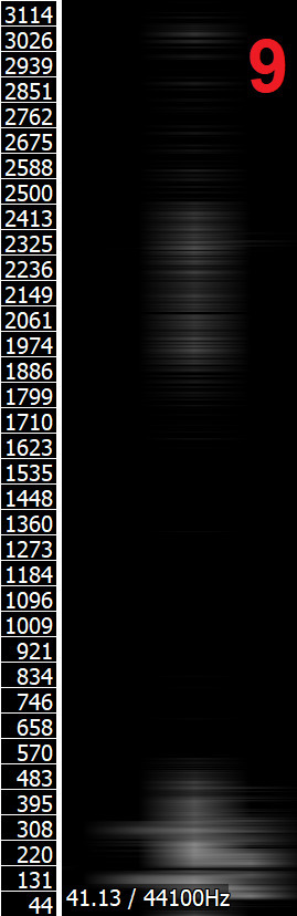 Les images ci-dessus présentent les spectrogrammes de 9 voyelles différentes, articulées et enregistrées par moi-même — de 11, montrées dur le diagram. Assortis les voyelles apropriées aux spectrogrammes, marquées avec des chiffres de 1 à 9. Marque deux voyelles, qui sont sur le diagram, mais ne se montrent pas sur les spectrogrammes, avec le chiffre 0. La cache peut être trouvé sur les coordonnées finales: