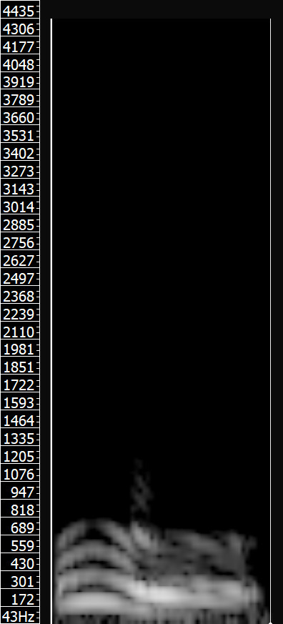 Spektrogram to graficzne przedstawienie częstotliwości danego dźwięku w funkcji czasu. W przypadku analizy pojedynczej samogłoski nie ineresuje nas oś czasu, a jedynie częstotliwości, które w idealnym przypadku nie powinny zmieniać się podczas całego jej trwania.