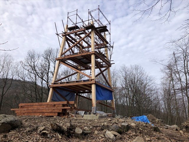 Rok 2017 byl ve znamení terénních úprav. V létě 2018 proběhla betonáž základů a nosných patek, na podzim pak byla vztyčena podstatná část trámové konstrukce. Na počátku dubna 2019 zbývalo dokončit podlahy vyhlídkových plošin, schodiště a střechu. Postup stavby lze sledovat na webových stránkách www.malecovskyrozhled.cz nebo na facebooku Skiareál Pohoří u Malečova.