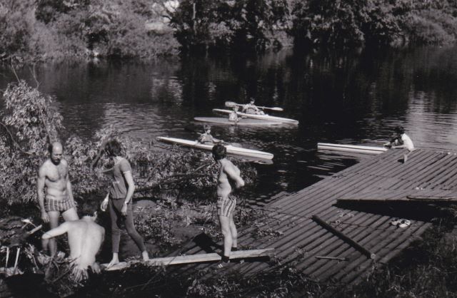 Areál s kabinami, kurty na odbíjenou a tenis,loděnicí a dřevěným hladinovým bazénem postavili dobrovolníci, sportovci svépomocí.