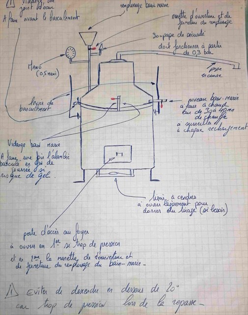 En activité optionnelle, Mr TroupeV bouilleur de cru du jour et Dédé, vous proposent une découverte du fonctionnement d'un alambic avec la fabrication d'une eau de vie de poire faite à l'ancienne.