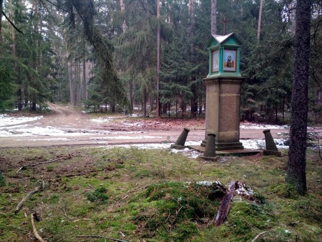 This listing deals with history of wayside shrine. It was at first only wooden picture hanged by retired local forest worker, later built in brick and mortar by Kinsky noble family, still owning forests around.