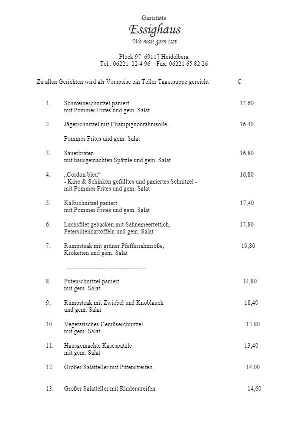 im Gasthaus "Essighaus", Plöck 97, 69117 Heidelberg