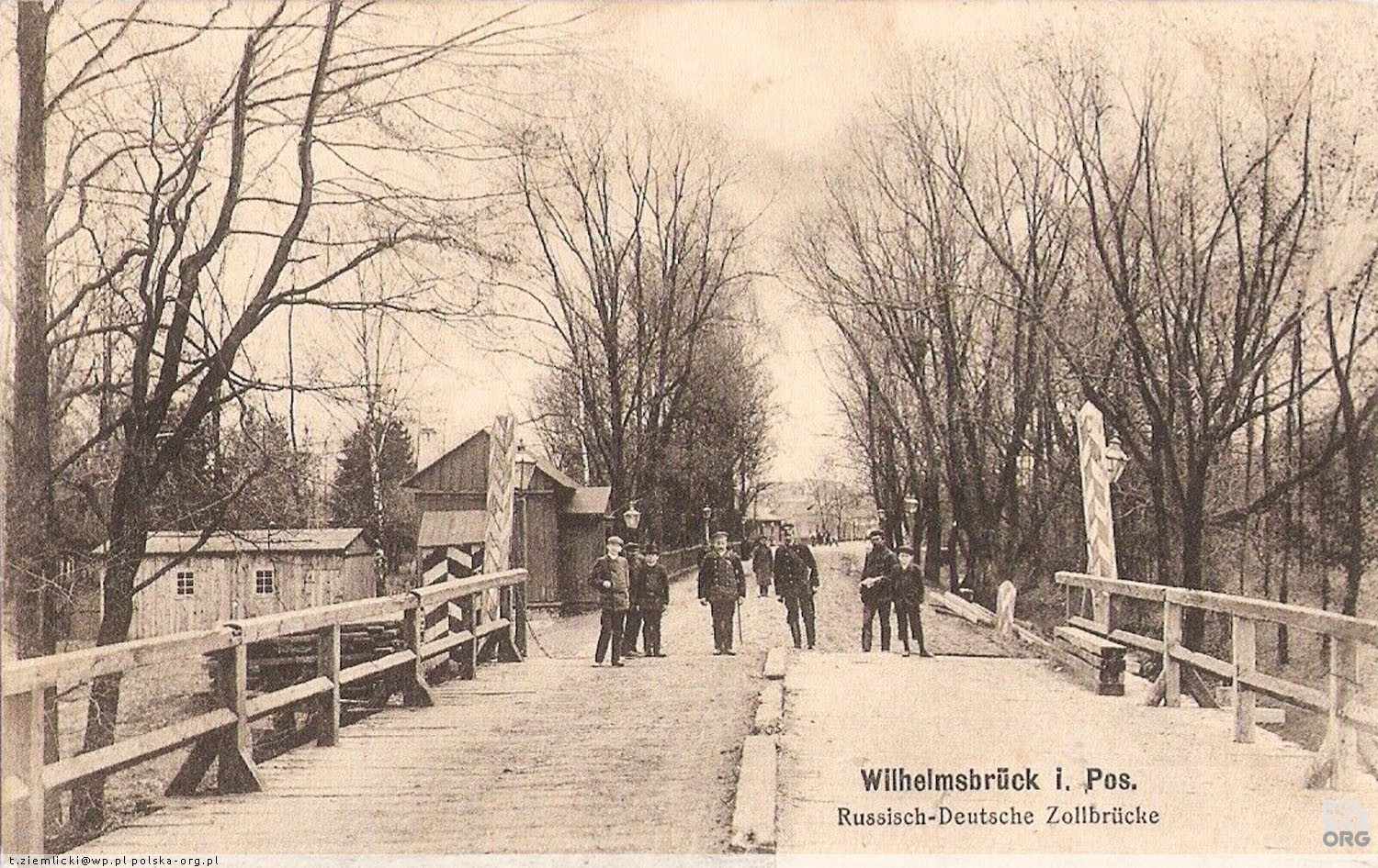 W 1793 roku w wyniku II rozbioru Rzeczypospolitej Obojga Narodów miasto Wieruszów zostało włączone do Królestwa Prus. W 1815 roku podczas kongresu wiedeńskiego zaborcy wytyczyli na rzece Prośnie i Niesobie granicę Prus i autonomicznego Królestwa Polskiego pozostającego pod zależnością Imperium Rosyjskiego. W ten sposób położony w województwie kaliskim Wieruszów stał się polskim miastem granicznym, zaś jego zachodnie przedmieście, zwane Podzamczem, znalazło się w Wielkim Księstwie Poznańskim Królestwa Prus i otrzymało później nazwę Wilhelmsbrück. W okresie przed wybuchem II wojny światowej wybudowany został nowy most drewniany na Niesobie, który zastąpił most graniczny z czasów zaborów. Zbudowany został przed budową mostu żelbetowego. Most żelbetowy oddany został do użytku w 1938 roku.