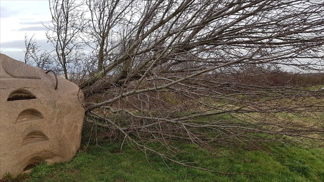 Vanmorgen, 17 december 2019, lag de boom op het slagveld, zo maar omgevallen. Hopelijk wordt deze mijlpaal snel vervangen.