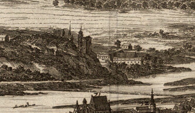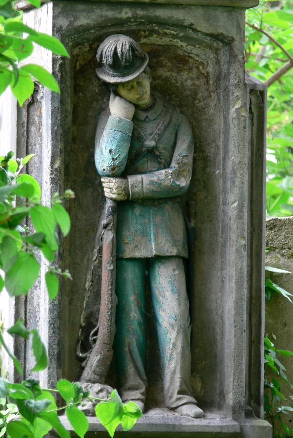 6) Nad lázněmi dojdeme k brance v ohradní zdi kostela sv. Klimenta. Jde o nejstarší dochovanou budovu zaniklých Buben. Eliška Přemyslovna Bubnám udělila roku 1311 dar "na stavbu nového kostela" - Bubny totiž měly kostel už mnohem dříve, což víme ze zmínky k roku 1234. Původně gotický, výrazně barokně přestavěný kostelík kolem sebe má starý hřbitov. Na hřbitově nejzajímavější památkou je nalevo za brankou hrob Václava Hory, hrdiny bitvy u Podola z roku 1866. Náhrobek tvoří plastika zasmušilého polního myslivce rakouské armády a česko-německá tabulka s podrobným vylíčením jeho odvážného činu a posledních dní. Ten příběh zaznamenal i Jan Neruda ve fejetonu "Pražští posluhové" (1877, dnešní mluvou by to byli Pražští messengeři). V krátké televizní reportáži "Přiložte životopis" (čas 14:42) o tomto náhrobku promlouvá Jan Werich, kterak k němu jako malý kluk rád chodíval. A na to natáčení zas vzpomínal scénárista V. Škutina, jak nemohli sehnat klíč od vrátek, a jak tam všichni, kameraman, Werich, i zvukaři s aparaturou tu zasněženou branku přelézali :) Ona bohužel bude nejspíš zamčená i teď, ale nepřelézejte ji, prosím.