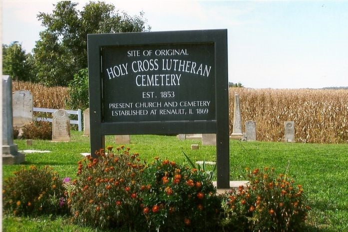 Organized originally as Emmanuel Lutheran Church in St. Joe, Illinois, this congregation was an off shoot of Holy Cross Church in Wartburg, Illinois. In 1869 Emmanuel moved to Glasgow City, later named Renault, and changed its name to Holy Cross.