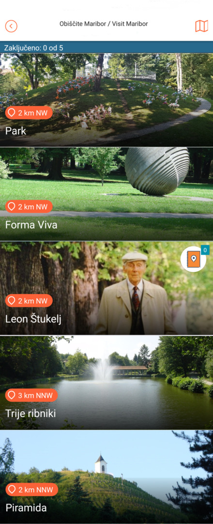 Predlagam da obiščete točke po naslednjem vrstnem redu: Park, Forma Viva, Leon Štukelj, Trije ribniki in Piramida.