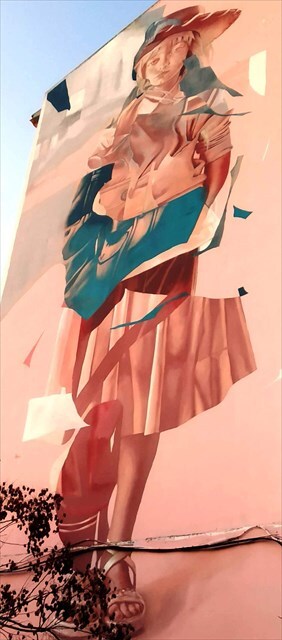 In the published coordinates you can see one mural on the side wall of the building on the right.