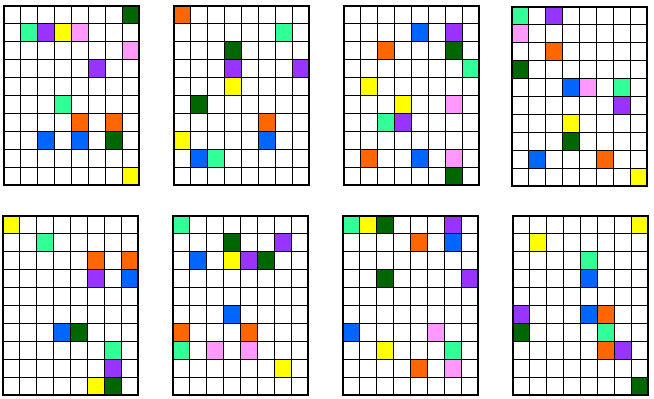 Fill out the grids by combining the respective colors. See an example in the gallery.