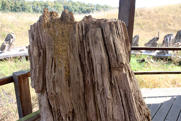 Nas coordenadas da earthcache, e à esquerda no interior e a seguir à entrada, deverá ver um tronco petrificado. Por favor não toque tronco.