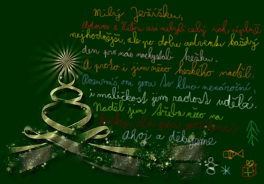 Proto jsme už dávno před vánoci napsali dopis Ježíškovi, aby i jim něco nadělil, stejně jako oni nadělovali po 24 dnů nám. Dnes je již po Štědrém dnu, a tak si myslíme, že kopii onoho dopisu můžeme s klidným srdcem ukázat i Vám: