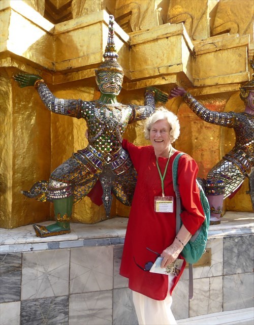 Group Day 1: Olivia and I met at breakfast the next morning and together went to the first meeting with our tour leaders and the rest of the group. Our group then traveled to Ruan Khun Yai, a traditional home on the Noi Canal. There we had a cooking lesson and made the curry paste for our lunch outside the home. There were many good Thai foods, including cucumber soup. After lunch we had a walking tour of downtown Bangkok, before being on our own for dinner and the evening. One suggestion was a visit to The Jim Thompson House to learn about his fascinating life - from success as the founder of a silk-making company to his mysterious disappearance in 19D7 - and to see his priceless collection of Asian art.