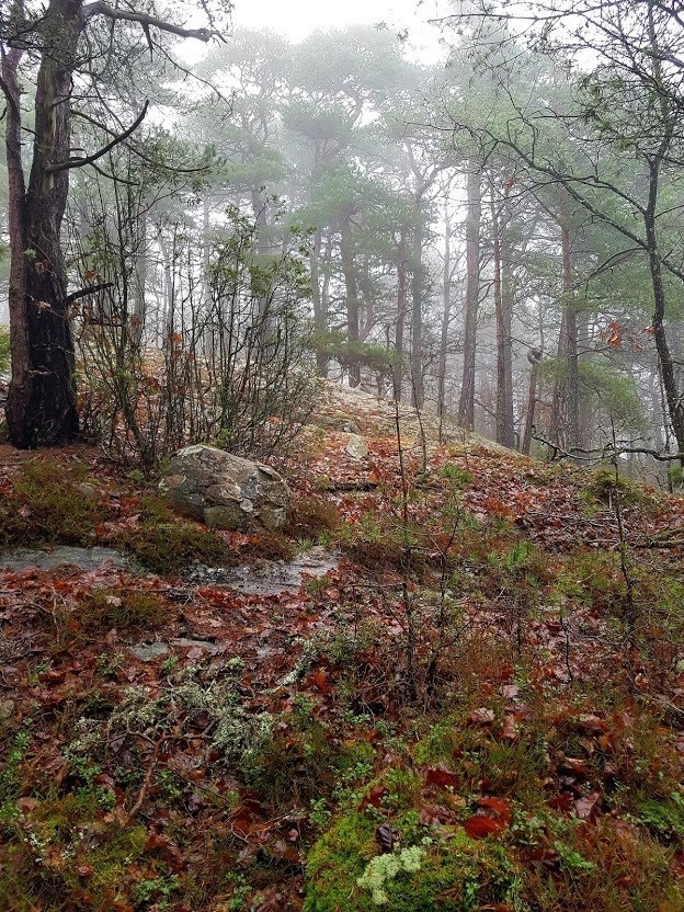 Härifrån cachen är det enkelt att gå rakt upp på berget för att hitta det gamla röset!