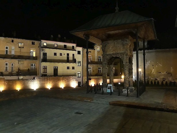 The Old Synagogue was built in 1630 to replace the old house of prayer. It was destroyed for the first time during a city fire in 1663. After a fire between 1815 and 1848, the synagogue was rebuilt and significantly enlarged. In 1878, a general renovation and renovation of the synagogue was carried out. It fulfilled its prayer and aesthetic function until 1935. During World War II, on November 8, 1939, the Nazis burned the synagogue, then in 1941 it was blown up and its walls were demolished. To this day, a brick bimah has remained in a state of permanent ruin. This is the central place of the synagogue, the podium from which fragments of the Torah are read. Four columns remained with a fragment of the vault, which was covered with a roof in 1987.