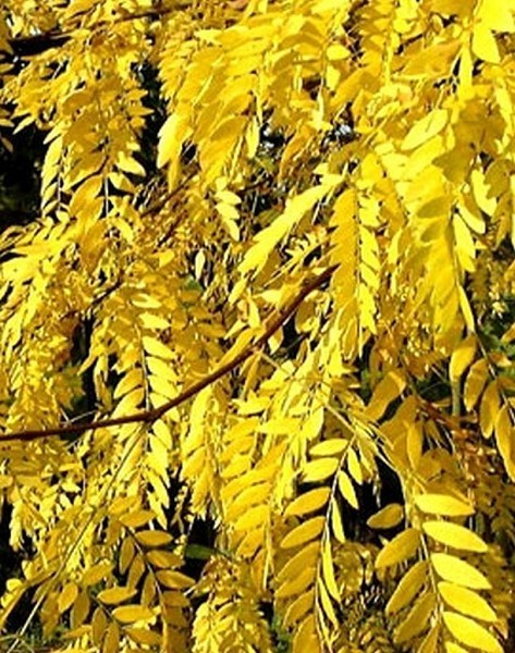 Anders dan de gewone Gleditsia is deze soort doornloos; het is 'vals'