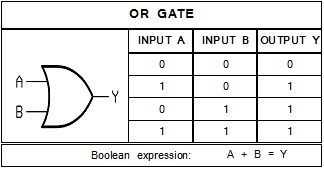 For example if A = 1, and B = 1, then using the boolean equation 1 + 1 = 1, as also shown in line three of the truth table.