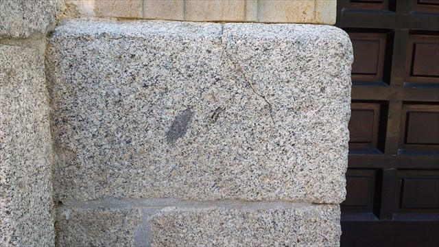 La roca caliza, cortada, tallada o desbastada, se utiliza como material de construccion u ornamental, en forma de sillares o placas de recubrimiento. Es material vulnerable a los enemigos tradicionales de este tipo de monumentos históricos, como la contaminación, las vibraciones producidas por el tráfico y las variaciones de la temperatura ambiente, que en la meseta son particularmente acusadas entre invierno y verano.