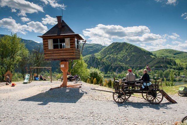 Areál dopĺňajú aj malé rozprávkové domčeky, v ktorých bývajú Janko a Marienka s Ježibabou, Snehulienka a 7 trpaslíkov. Je tu aj domček na stračej nôžke, detský kolotoč, trampolína a detské ihrisko so šmýkalkou.