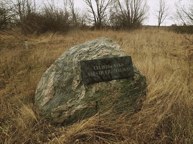 Šioje vietoje 1935 metais vyko valstiečių streikas. Tai progai net atminimo akmuo skirtas! (ir lobis tuo pačiu). :) Kol ieškosite lobio, papasakosiu apie tą streiką šiek tiek daugiau, nes tikriausiai patys nei žinot, nei prisimenat... :D Automobilį kur statyti rasite netoli, bet: vietovė yra šalia judraus ir pavojingo kelio. Šioje sankryžoje yra įvykusi ne viena skaudi nelaimė. Nepamirškite atsargumo bėgdami link lobio!