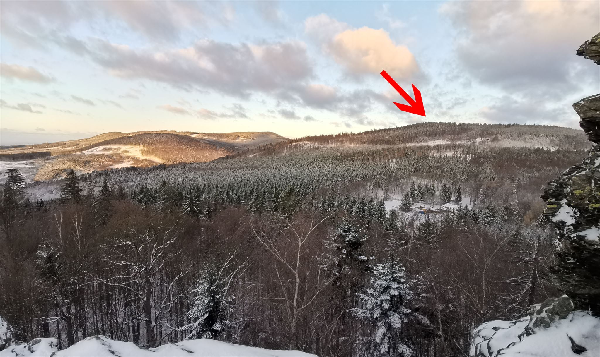 Nejsnáze se na vrchol dostanete přes severní přístupový waypoint, i když jde to i přímo lesem od rozcestníku Rabštejn - rest.. Na kole by to šlo asi taky, ale nezkoušel jsem to.