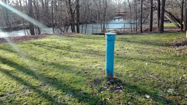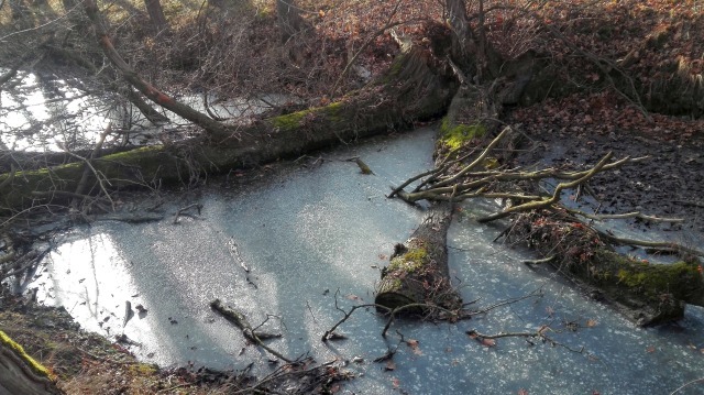 13. Zde přejdi na druhý břeh a jdi po proudu. Všimni si, že na větších stromech jsou malé kovové cedulky s čísly. Můžeš jít i po tomto břehu, je to však trošku těžší. Hledej v okolí několik vodorovných rovnoběžných. Jsi u cíle.