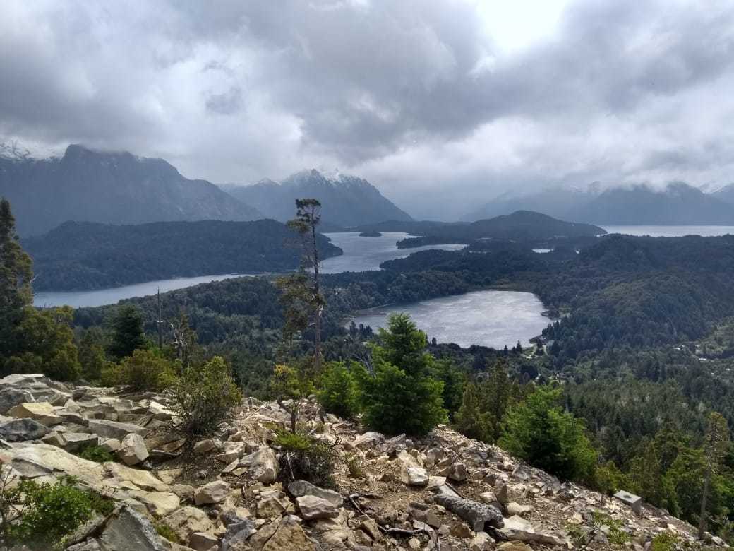 De arriba hay vistas panorámicas espectaculares de toda la zona, con los lagos y cerros a lo lejos.
