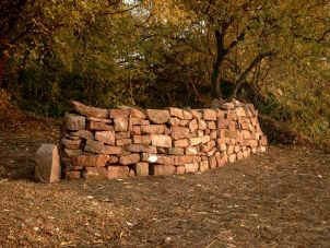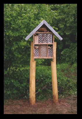 Danach wurden auch unter einem alten Kirschbaum Tische und Bänke errichtet. Eine Gruppe behinderter Kinder schüttete zudem einen Unterschlupf für Mäuse auf. Desweiteren wurden "Bienenhotels" gebautund aufgestellt, sowie ein Unterschlupf für Igel erstellt. Beim Unterricht im Freien sollten dann in Zukunft Schautafeln den Stoff vermitteln. Alle Beteiligten hatten einige Jahre sehr viel Freude dabei, unsere Natur so hautnah zu erleben, doch dann geriet das "Waldklassenzimmer" langsam in Vergessenheit und verfiel zusehends. Heute erinnern nur noch Reste der Trockenmauer, die überwachsenen Sitzgelegenheiten und eine Tafel an das "Waldklassenzimmer". Einzig die "Bienenhotels stehen noch....