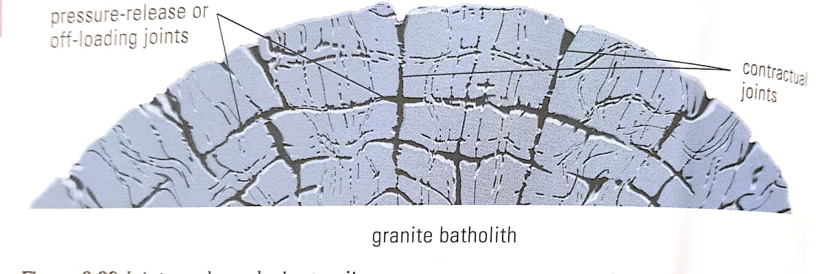 Joints formed when the magma cooled, contracted and solidified to form granite are called contractual joints and cross one another at right angles.
