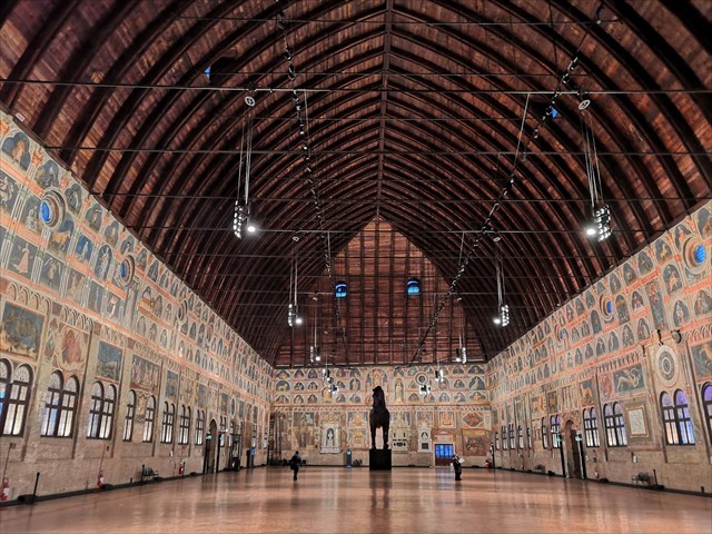 ITA: Con i suoi 82 metri di lunghezza e i 27 di larghezza il Salòn o Palazzo della Ragione, l'antica sede dei tribunali cittadini di Padova, è una delle più ampie aule sospese in Europa. Riconosciuto come uno dei più celebri monumenti civili eretti in Europa all'epoca dei Comuni, l'edificio fu innalzato a partire dal 1218.