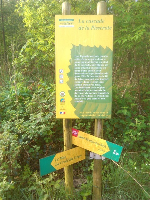 During my walk to santiago de Compostela I passed this intersection. You can go to Les Biefs or to the small cascade de la Pisserote.