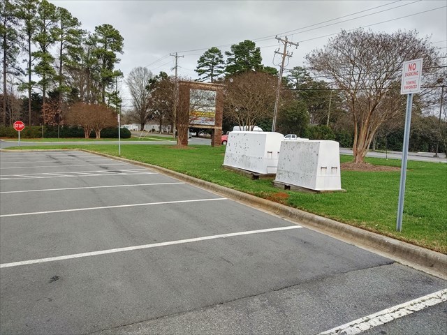 This makes no sense. You build an area with stores and an adjoining parking lot complete with marked spaces then you put up signs that say if you park there you will be towed. Not going to be helpful for any business that locates here but then you are only here for the cache. I would think that you can park here, find the cache and be long gone before any tow trucks show up.