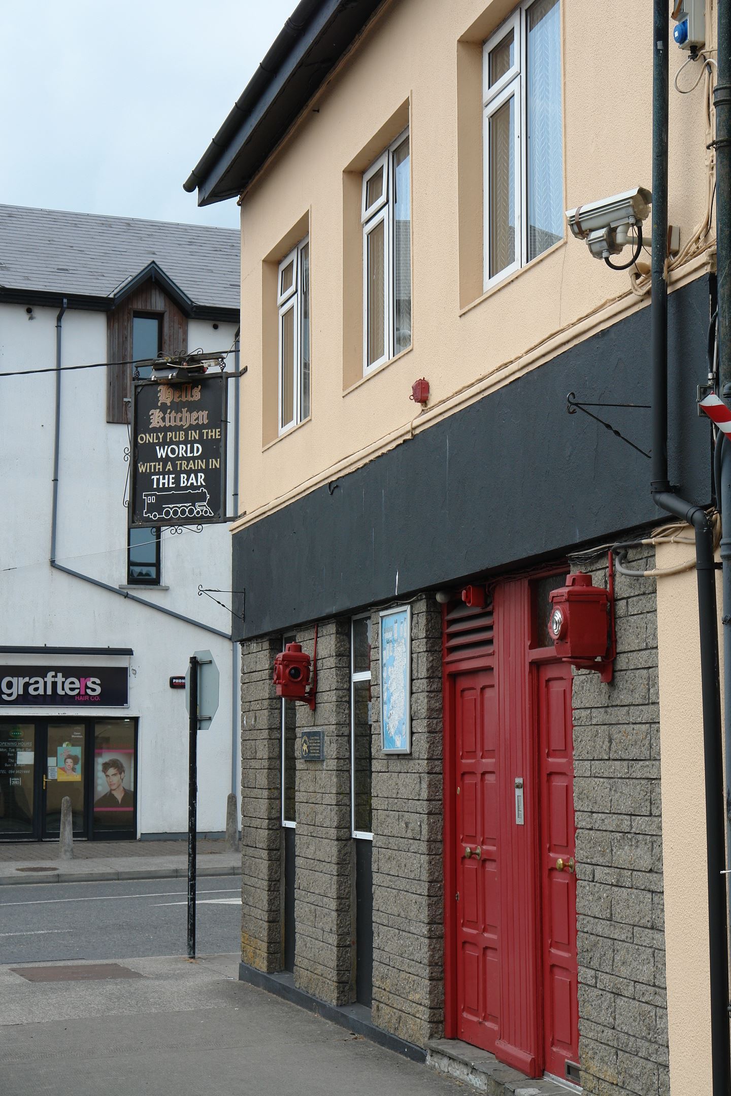 One of the major attractions at the Castlerea Railway Museum and Pub, in Castlerea, County Roscommon, is the locomotive A55, a Metropolitan Vickers diesel electric dating from 1955. It was purchased from Iarnród Éireann minus its machinery and moved to the premises where it was converted into a snug. A railway museum was built around the locomotive and the overall effect suggests that it had arrived through the wall of the building into the bar. The museum displays a large and varied repository of railway heritage memorabilia. The pub, now closed, was supposedly the only one in the world with a railway locomotive within the walls.