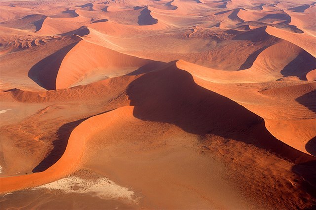 Estrella - Radialmente simétricas, las dunas de estrellas son montículos de arena piramidales con superficies deslizantes en tres o más brazos que irradian desde el centro alto del montículo. Tienden a acumularse en áreas con regímenes de viento multidireccionales. Las dunas de estrellas crecen hacia arriba en lugar de lateralmente.