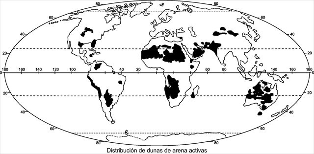 Las dunas ocurren en algunos desiertos, tierra adentro y a lo largo de algunas costas. Algunas áreas costeras tienen uno o más conjuntos de dunas que corren paralelas a la costa directamente tierra adentro desde la playa. En la mayoría de los casos, las dunas son importantes para proteger la tierra contra los posibles estragos de las olas del mar. Aunque las dunas más ampliamente distribuidas son las asociadas con regiones costeras, los complejos de dunas más grandes se encuentran tierra adentro en regiones secas y se asocian con antiguos lagos o fondos marinos. Las dunas pueden formarse bajo la acción del flujo de agua, y en lechos de arena o grava de ríos, estuarios y el lecho marino.