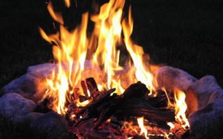 zu einem Lagerfeuer, mit kleiner Fackelwanderung,
