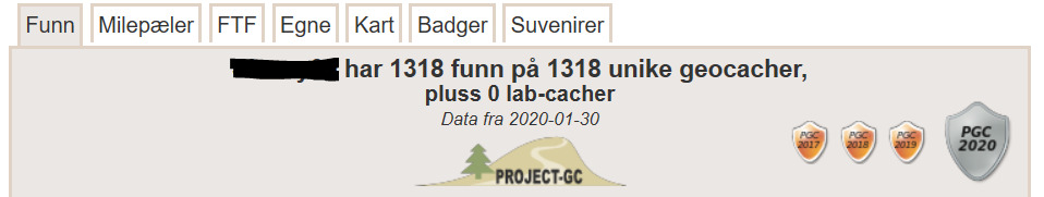 Her ser du noen faner med hva du kan se når du har logget inn. Fanen egne er bare for de som eier en cache selv.